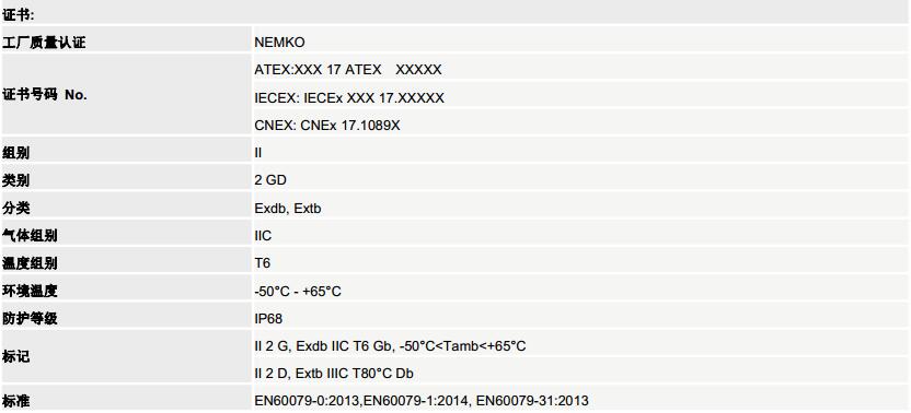适用于可能发生爆炸的环境(可燃性爆炸性气体、粉尘)。适用于石油石化、化工、航天航空、军工、码头港口、医药、油漆、纺织、酿酒、印染、粮食加工等爆炸性危险环境。