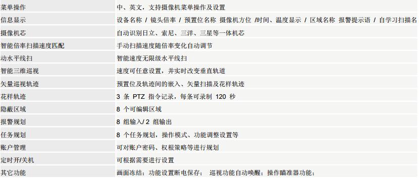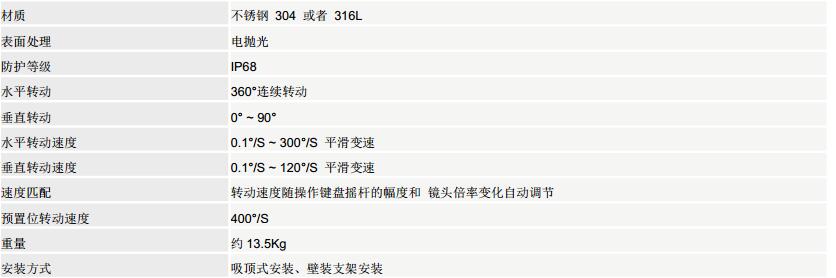 可在水平方向进行 360°连续旋转、垂直方 向 0°~90° 垂 直旋转,手 动操作时, 转动速度在 0.1°/s~300°/s 范围内平滑可变,可以轻松跟踪快速移动的 物体,在长焦端也能自如地捕捉活动对象。在调用预置位 时。转速能够达到 400°/s。